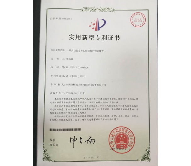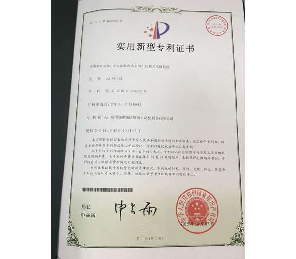 YG頭專(zhuān)利證書(shū)